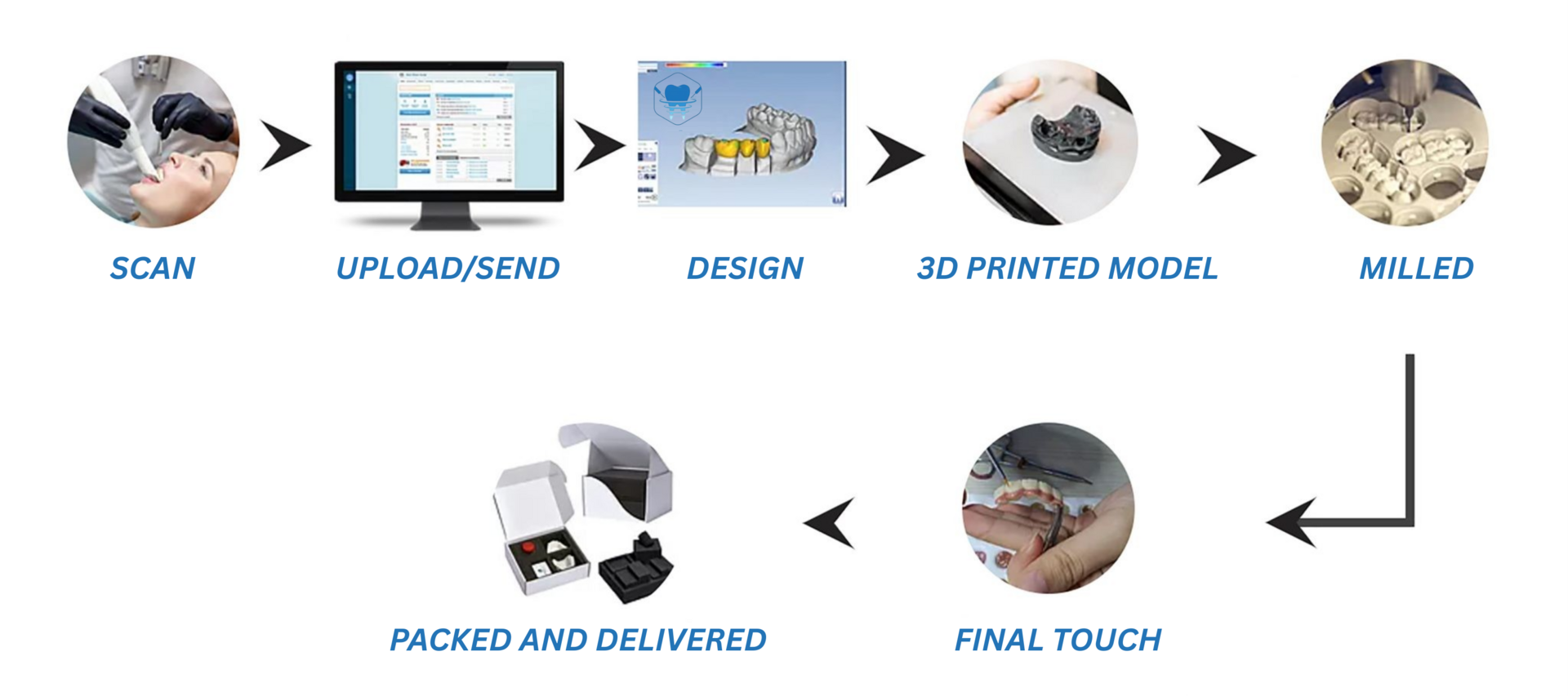 We specialize in rapid delivery without compromising accuracy. Our digital-first workflow ensures crowns, bridges, and denture repairs move from scan to seat faster than traditional labs.